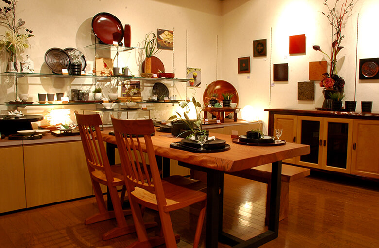 「漆器」という堅苦しくて古くさい物というイメージを持っている方にも「ふだん使いのできる木の器や家具、そして長く愛されるもの」へと思いを変化させていただけるよう、多くのアイテムをご紹介できるショールームもございます。