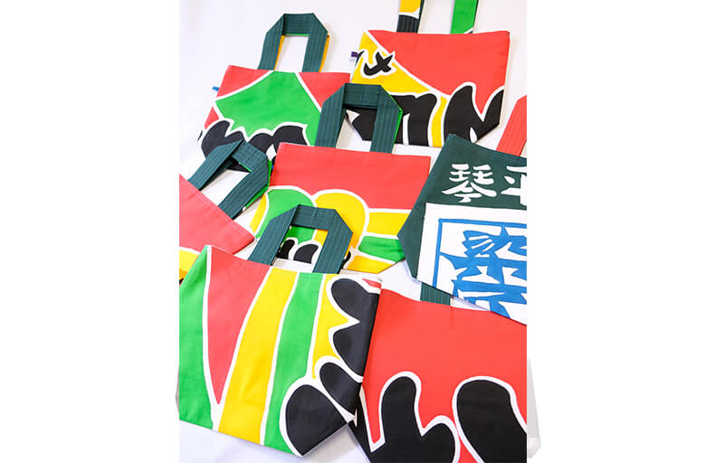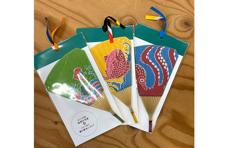 香川県伝統的工芸である「讃岐のり染」という手法で、大きいものから小さいもの一点一点手作業で、想いを込めて染めています。