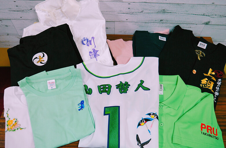 学校の体操服のネーム刺繍や企業名・ロゴマーク刺繍からTシャツや横断幕等のプリント。